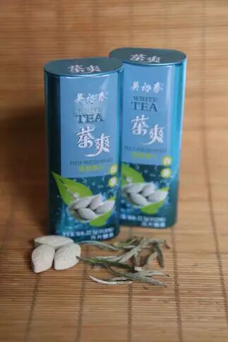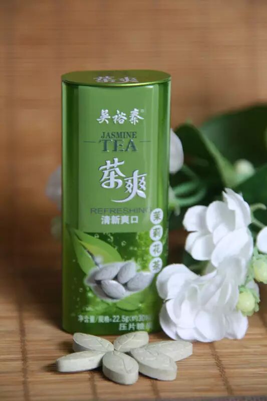 淡黄绿色的罐子,更突显茉莉花的清新淡雅。吃一粒茉莉花香馥郁,清新爽口!