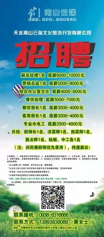 52、甘谷花之林餐饮有限公司招聘