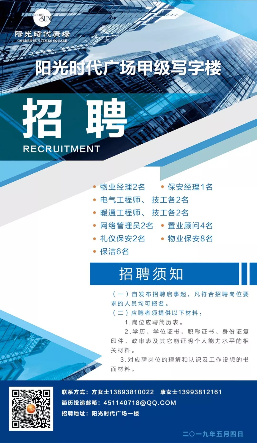 要求:有一定的管理工作经验和能力,能吃耐劳,具体事宜面试详谈。