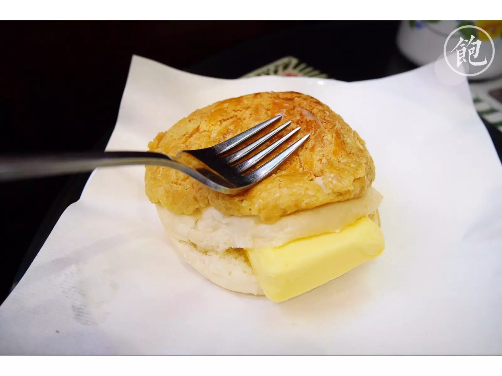 茶记这个菠萝油的牛油超大一块,料很足,不过包身稍欠了些松软。