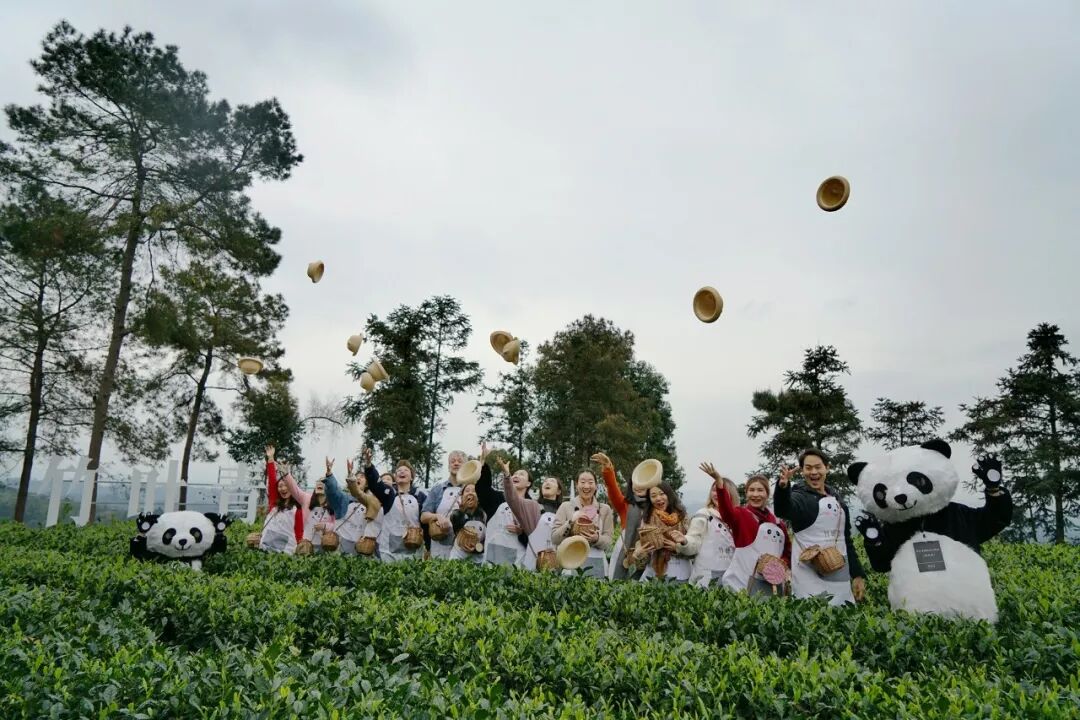在竹叶青茶山守护员Mr.panda 的带领下,这些特殊的客人穿上小围裙,戴上小草帽、背上小背篓,在峨眉山当了一回“茶农”,探访竹叶青茶采摘、加工的全过程,深度体验竹叶青文化。事实上,多年以来,竹叶青已经走出国门,收获了全球各国的粉丝。