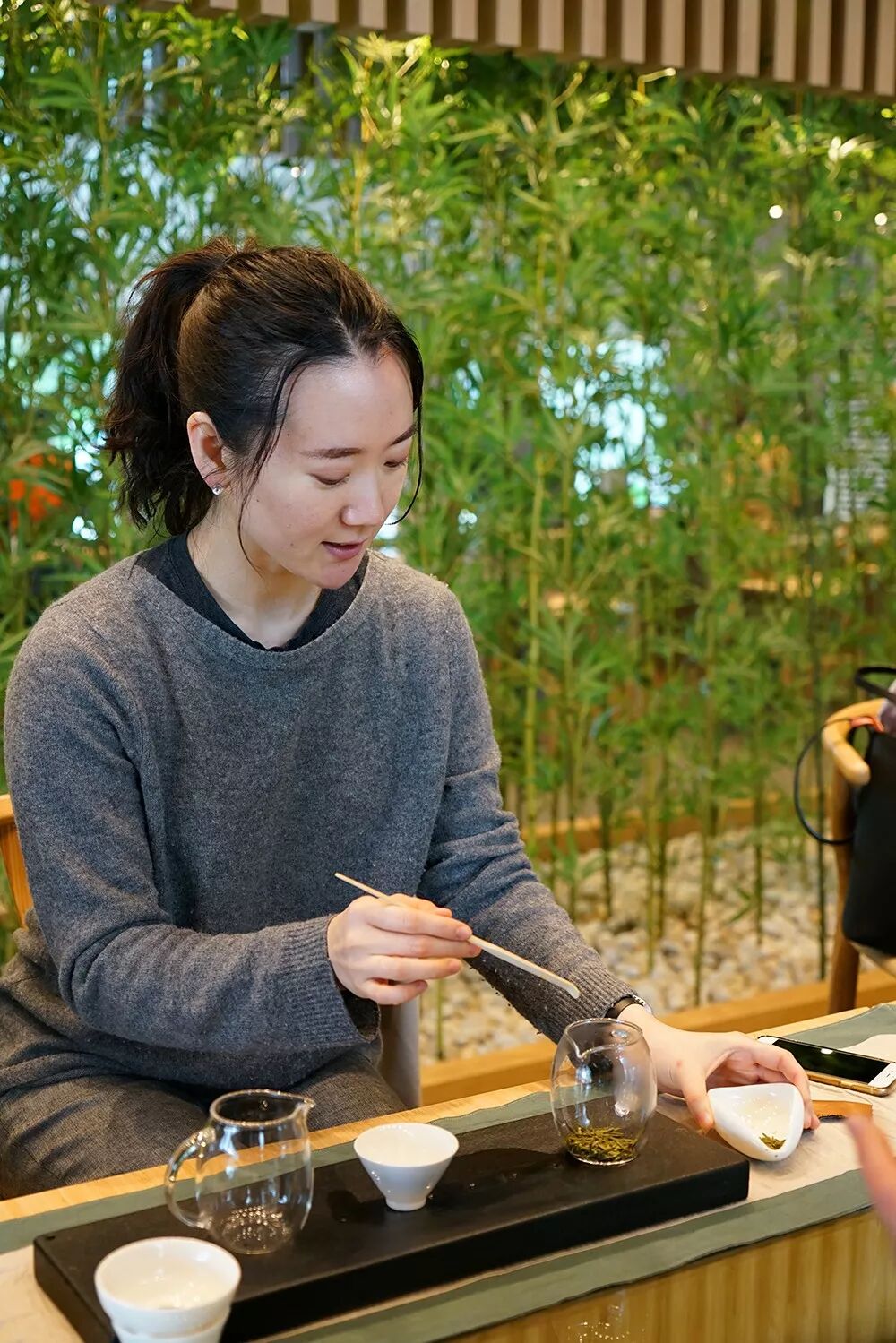 竹叶青作为中国高端绿茶的代表,又极致地代表了中国绿茶之美,被誉为“绿茶中的翡翠”。竹叶青茶选用明前全茶芽制成,辅之独特的工艺,冲泡后直立在杯中呈现出独特的“茶舞”,这份独一无二的美也是中国茶的独有之美,是一份难得的体验。“原来好茶是会跳舞的!”来自墨西哥的留学生感叹到,而来自泰国留学生表示,竹叶青是很健康的茶,在泰国也很受欢迎。