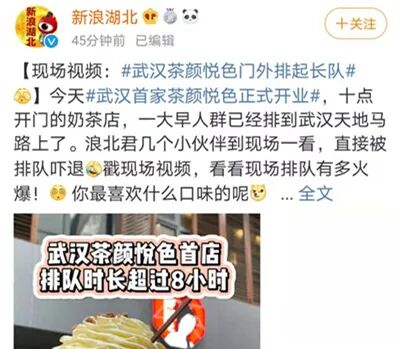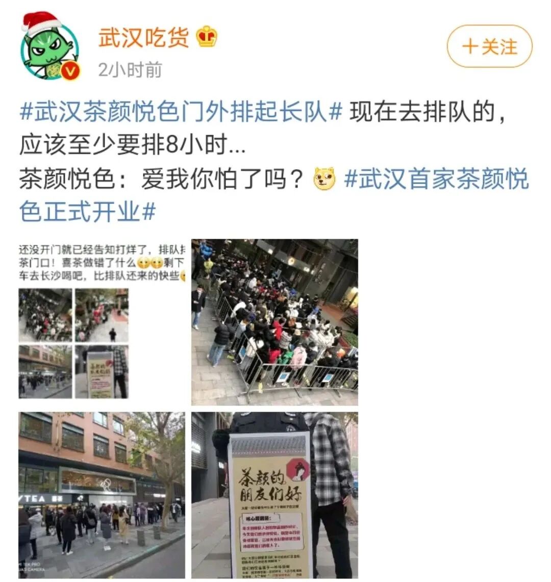 热搜第一!茶颜悦色武汉店开业,排队超8小时!网友坐火车到长沙买还快些…