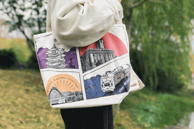 店内有品类丰富的周边产品区,其中带“热干面”字样的茶杯、带“黄鹤楼”图案的徽章、江城过早主题的笔记本、随行包等都是为武汉市场限定定制的新品。