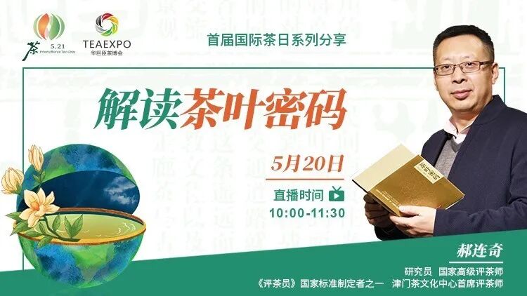 #国际茶日#系列活动直播来咯!华巨臣&茶阅课堂邀请《评茶员》国家标准制定者之一——郝连奇 ,带来《茶叶密码》的直播课程,带大家解读茶叶密码,科学饮茶和科学泡茶~▼详情请戳链接:2000万茶人探寻的秘密,《茶叶密码》作者郝连奇为您揭晓!