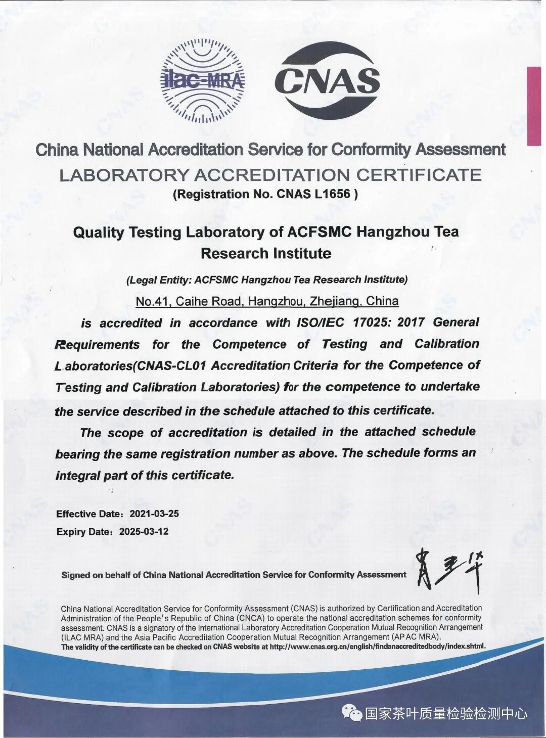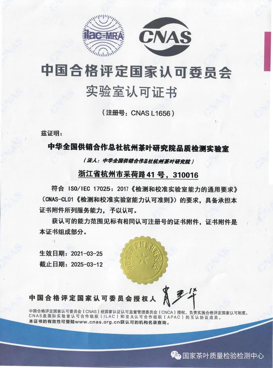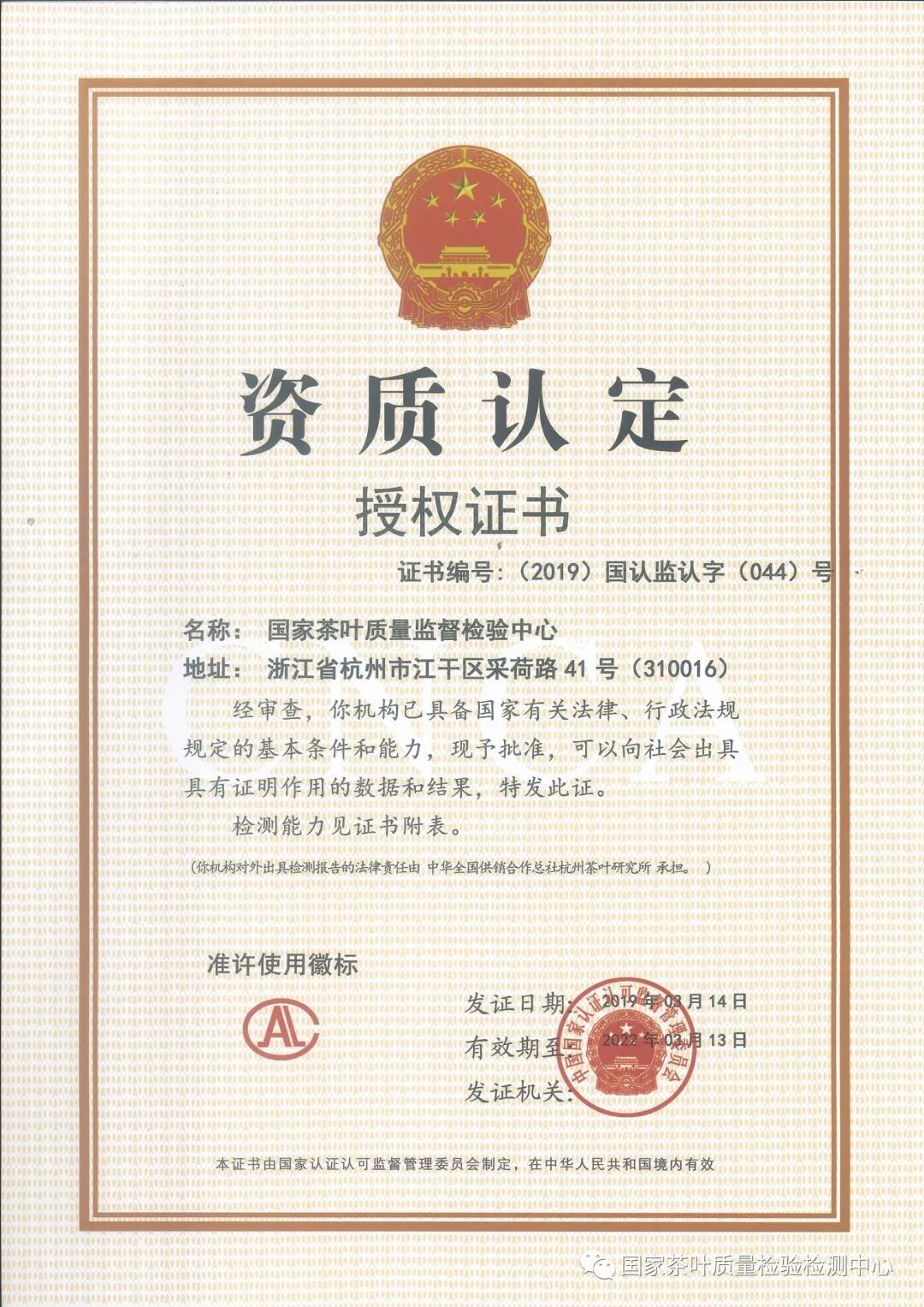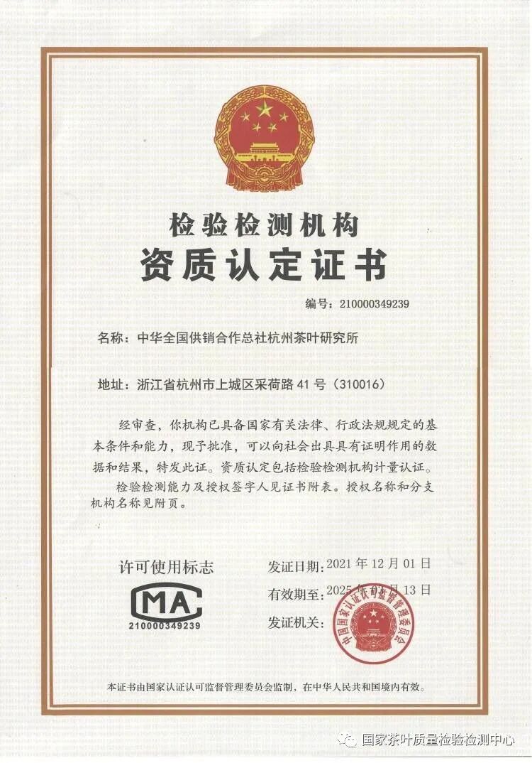 国家茶叶质量检验检测中心成立于1988年,是由国家市场监督管理总局、国家认证认可监督管理委员会授权,并经中国实验室国家认可委员会认可的国家级检测检验机构。