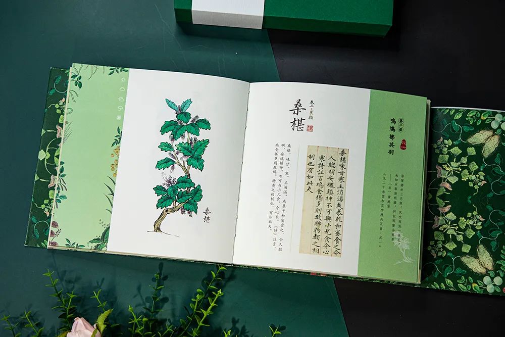 它是一部活的《食物本草图谱》。以国家图书馆藏孤本明代《食物本草》为底本,选取了120种动植物,依据一年四季的24节气顺序编排,精心设计了“古今本草特色、节气厨房美食、物候诗文心语”等典藏内容。