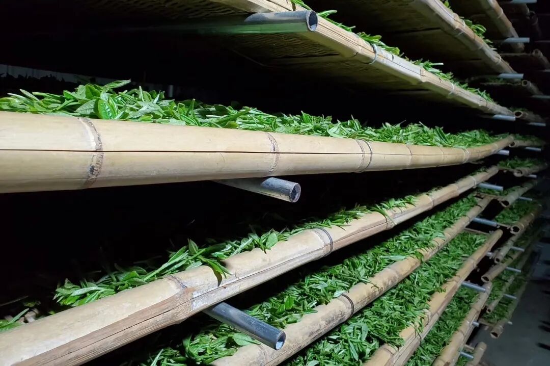 白茶,不炒不揉,制作工序简单,但技术不简单。茶鲜叶采摘下来后,在日光下或室内进行萎凋,需要有适宜温湿度条件,萎凋至八成干再用文火烘至足干制成。加工工序看似简单,但是要做出毫香蜜韵就需要精准把握加工过程中的每一个环节。