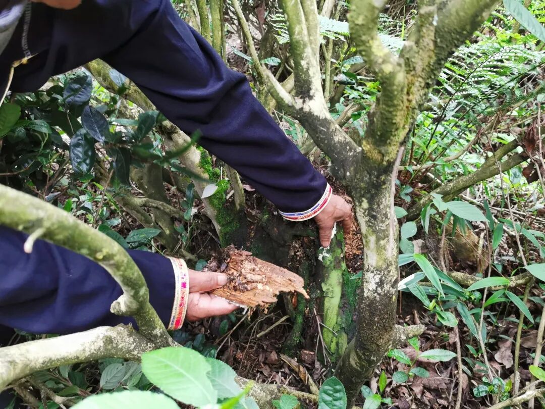 原来这里是以前的茶马古道驿站,我估计这些茶树是马帮带来播种,刚好遇到适宜的气候,所以几百年来大片生长。绒巴茶是“藏民的茶”的意思,是藏区传统的黑茶做法。绒巴茶坊旁边有片古茶树,我挖开根部土层看树根大小,应该是百年以上的老树了。九龙约有14万株这样的古茶树,把我惊呆了。