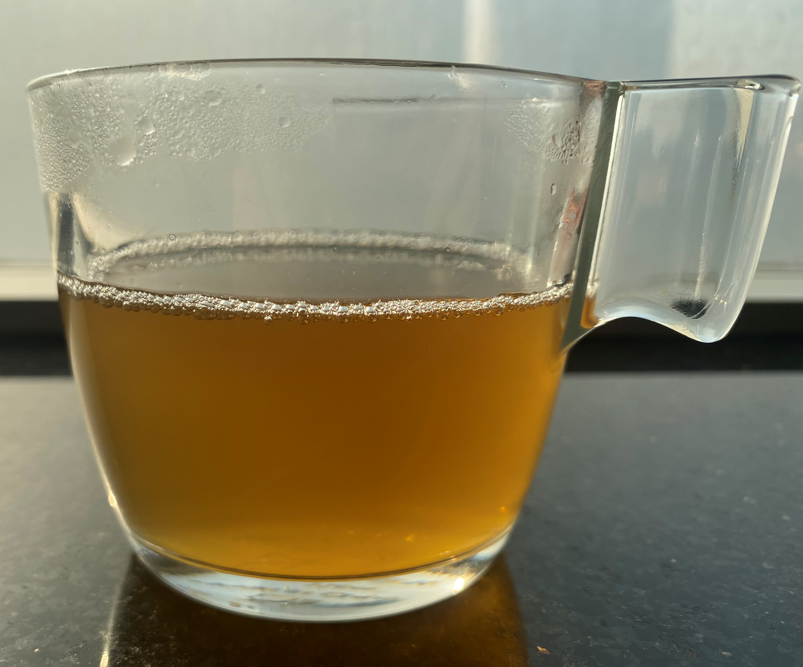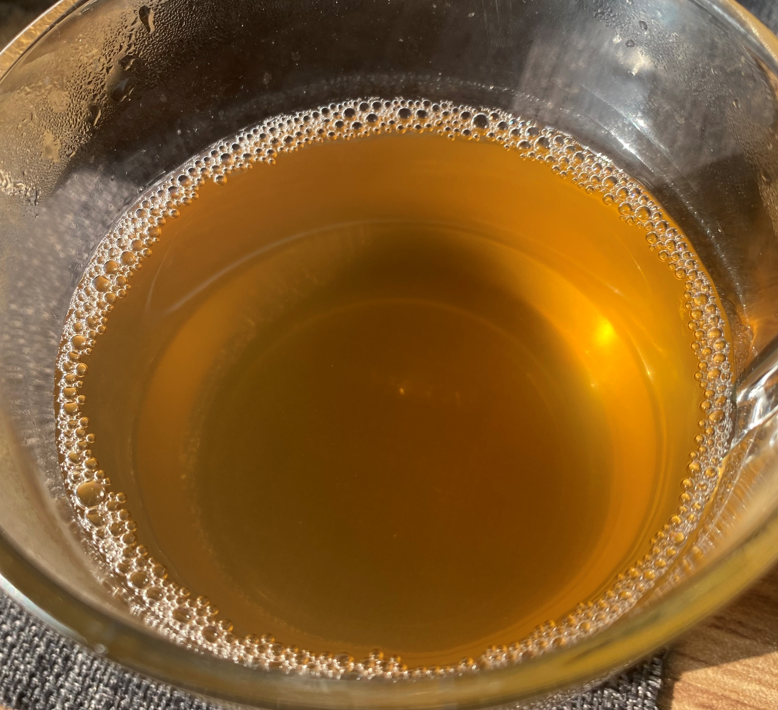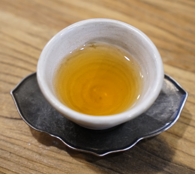 喝了将近一个小时,这个时候的茶汤橙色渐浅成清亮色。口感清甜、纯净,嘴巴特别舒服。