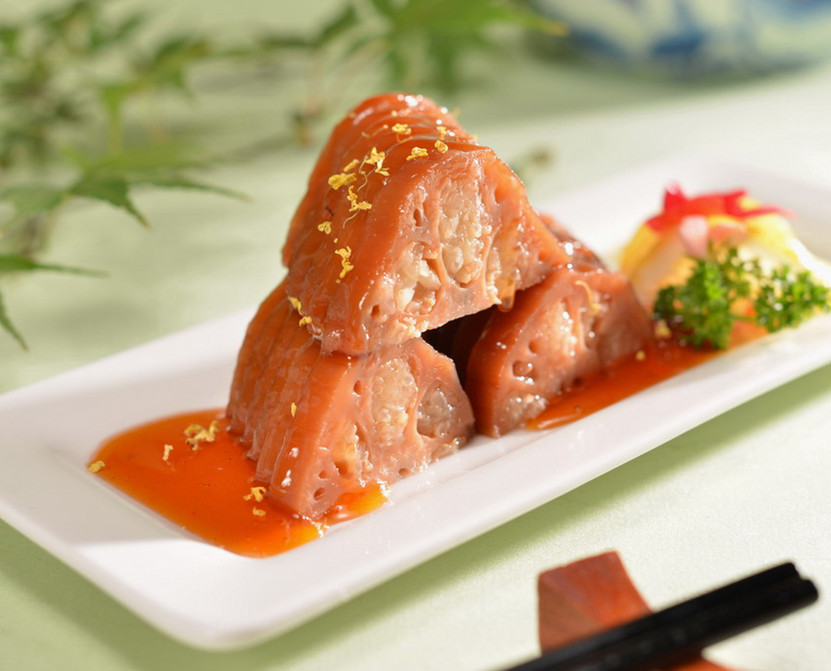 吃法:将糯米藕去包装袋切片摆盘,浇汁后加盖保鲜膜,微波高火2-3分钟或沸水蒸制12-15分钟至糯米藕酥软即可食用。