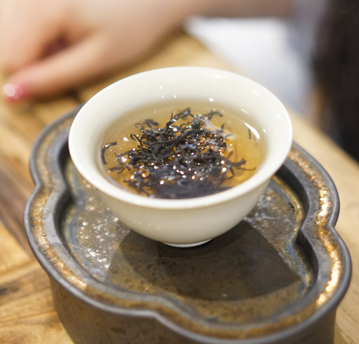 喝了几泡后,茶汤仍是橙红色,色泽渐渐清透。口感甘、润、醇、和,有悠悠的花香。包总说,这是中段,是种植地茶叶本质的味道。