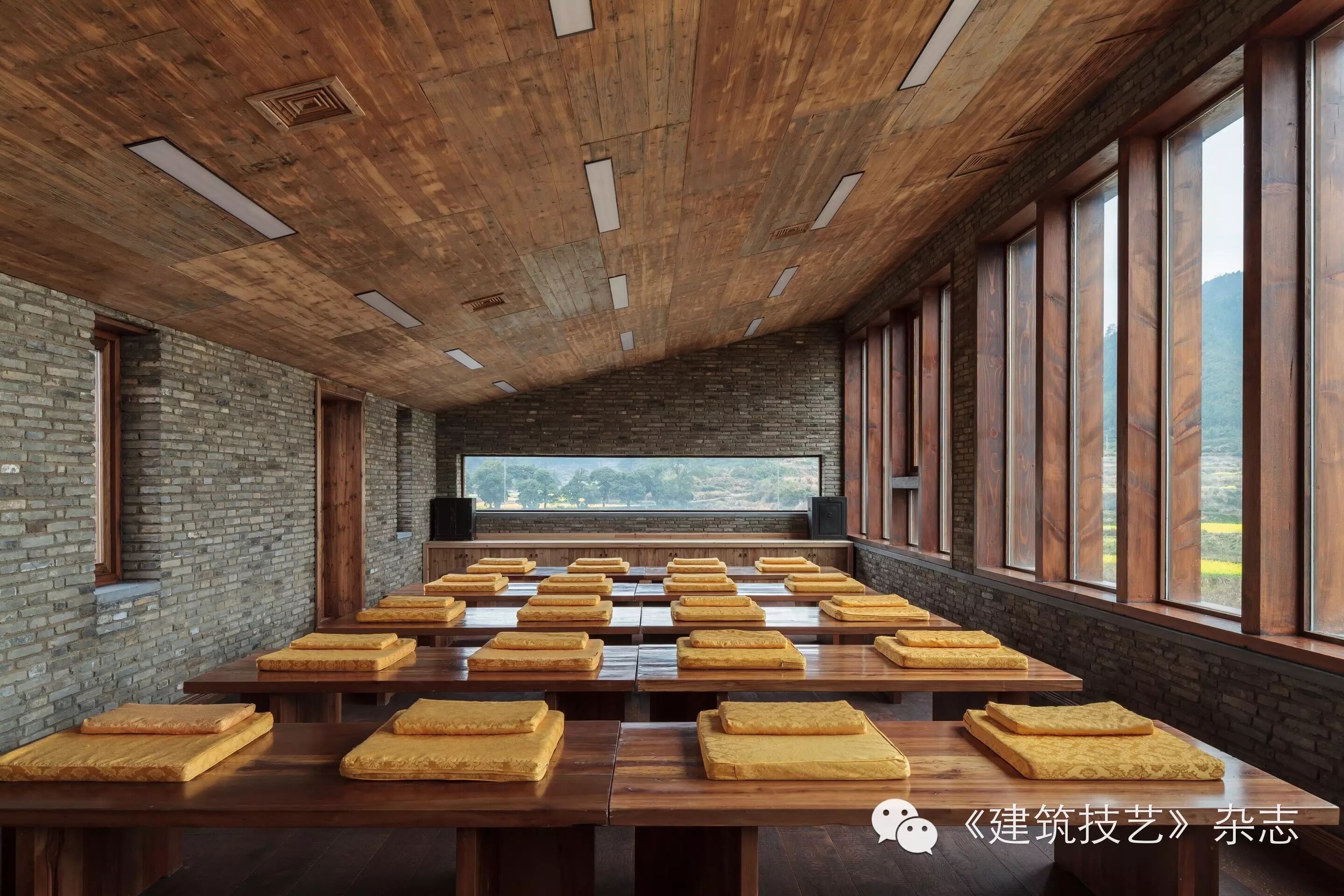 “简化”和“旧材新用”对工人的技术要求不高,只要具备正常技术水准和责任心即可,施工难度降低,施工质量容易保证,建筑材料的二次利用率高,客观上通过建材表面肌理最大限度地保留了当地历史信息。此外,“简化”和“旧材新用”奠定了整个建筑的基本格调,同时也带来两个附加值,即绿色环保,以及与业主的价值观和宗教信仰相吻合——业主是佛门弟子,旧材新用与佛教的轮回有相通之处。