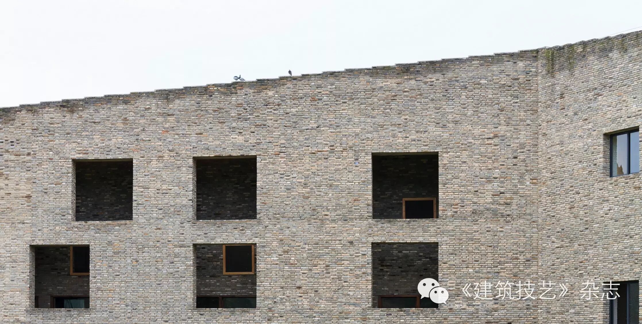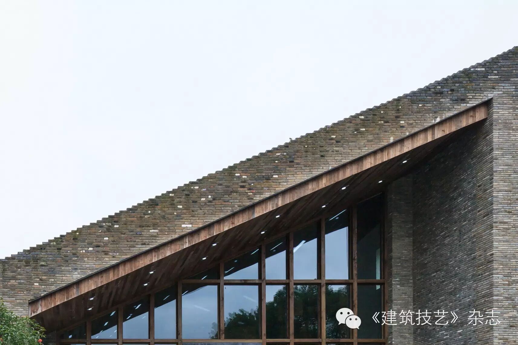 旧砖有四种规格,按重力原理,重的放下面,轻的放上面。旧砖只做简单分类清理,表面痕迹尽量保留,一则减轻工作量,二则在新建筑中保留了老房子的影子,形成另类视觉传达。所有砖墙均采用一丁一顺砌法,简化了节点构造,降低了施工难度。坡屋顶斜檐口由于采用同样砌法,取得层层叠退的特别效果,我们称之为“像素檐口”。