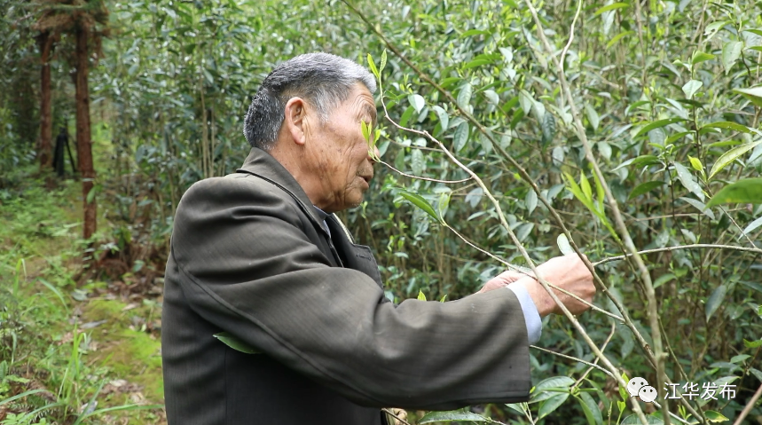 江华苦茶是一种古老的乔木型茶树,历史溯源可到春秋时代,据检测,其茶叶中所含茶多酚含量为目前湖南省已知茶叶品种中最高,适合制作红、黑等发酵型茶叶。为了让古树茶叶卖出更高的价值,乡政府今年邀请了专门的茶叶商过来采茶,并指导村民按照不同的标准进行采茶。