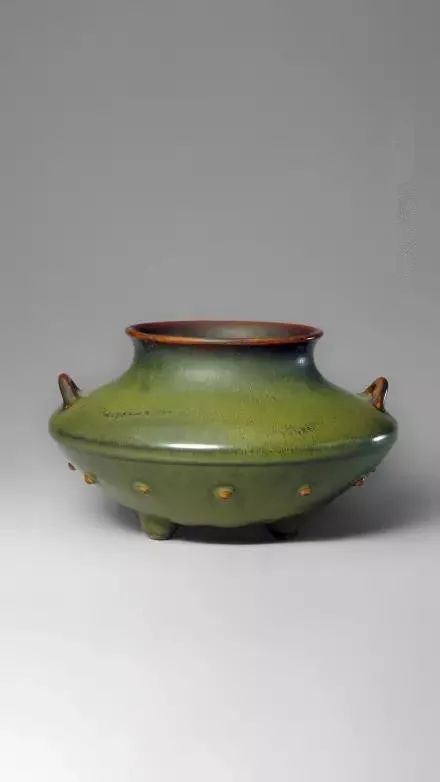 清乾隆 茶叶末釉羊首尊茶叶末釉实际上是一种结晶釉。X-射线衍射分析和透射电镜成分分析表明,茶叶末釉上析出的晶体属于辉石类型。辉石是一系列辉石族矿物的总称,组成复杂,这也是导致古代茶叶末釉色调多样性的原因。