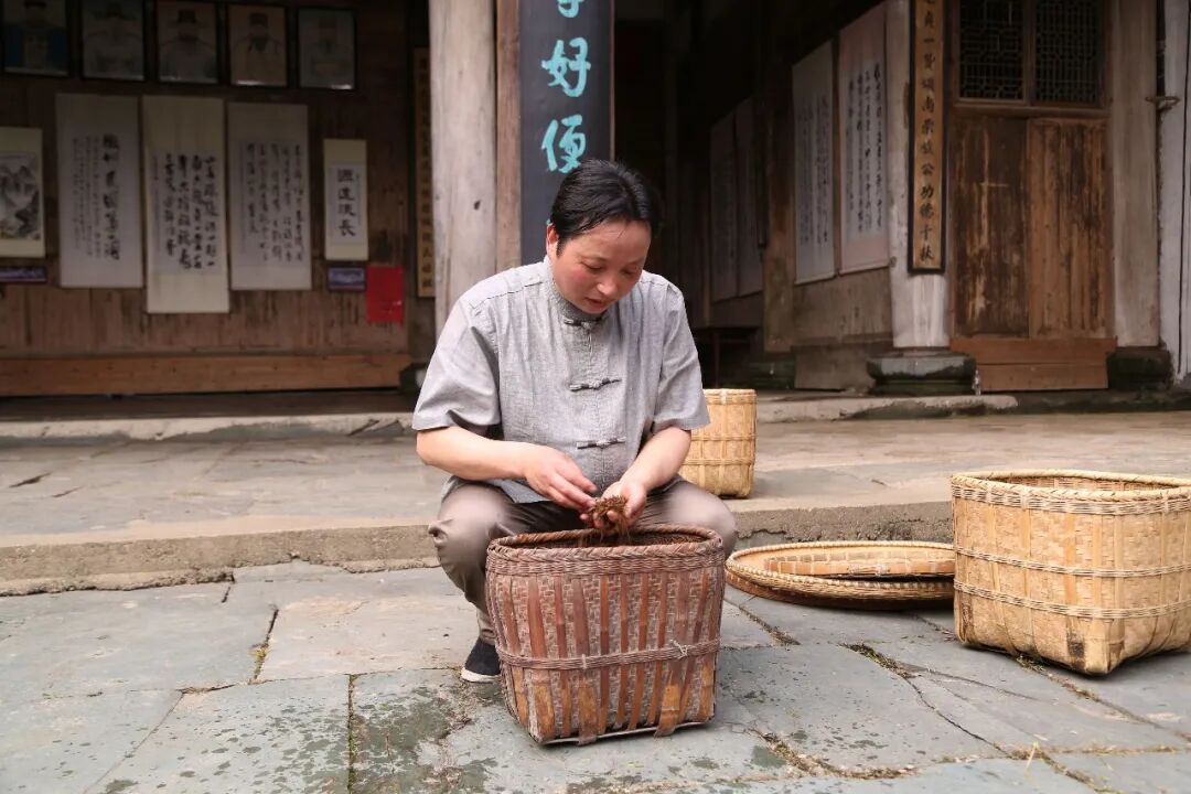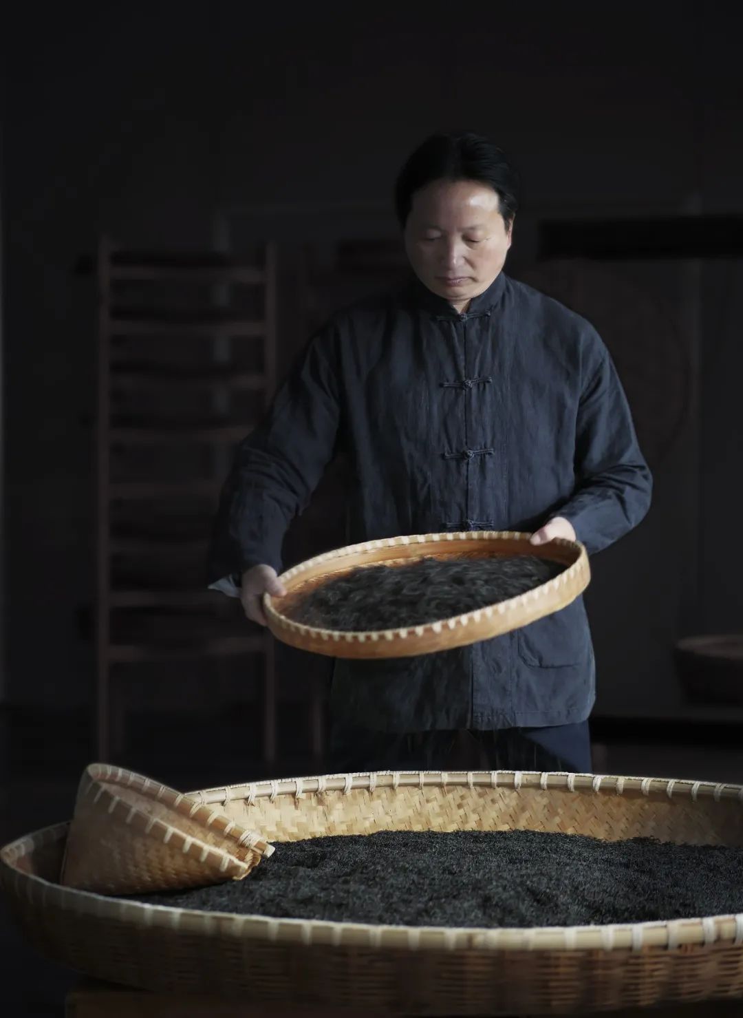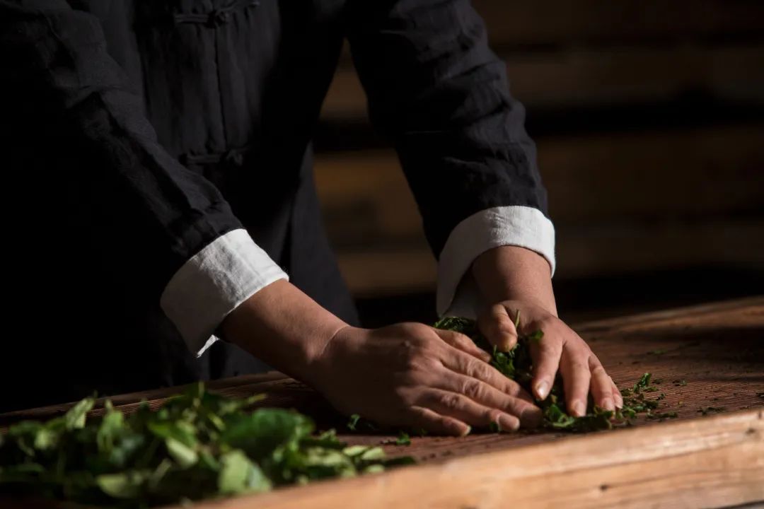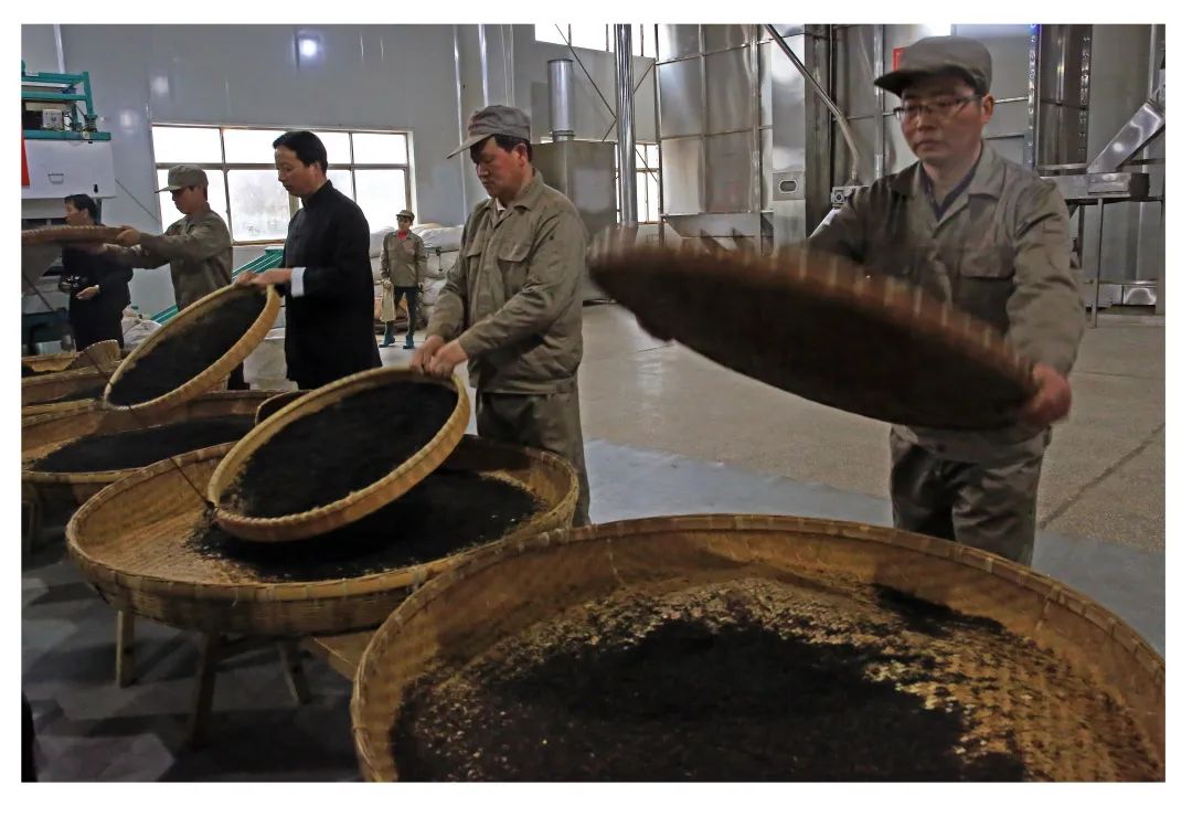 (3)发酵。又称“焐红”,将揉捻叶置木桶或竹篓中,上盖湿布或棉絮,放在日光下焐晒,待叶及叶柄呈古铜色,并散发茶香,即成毛茶湿坯。