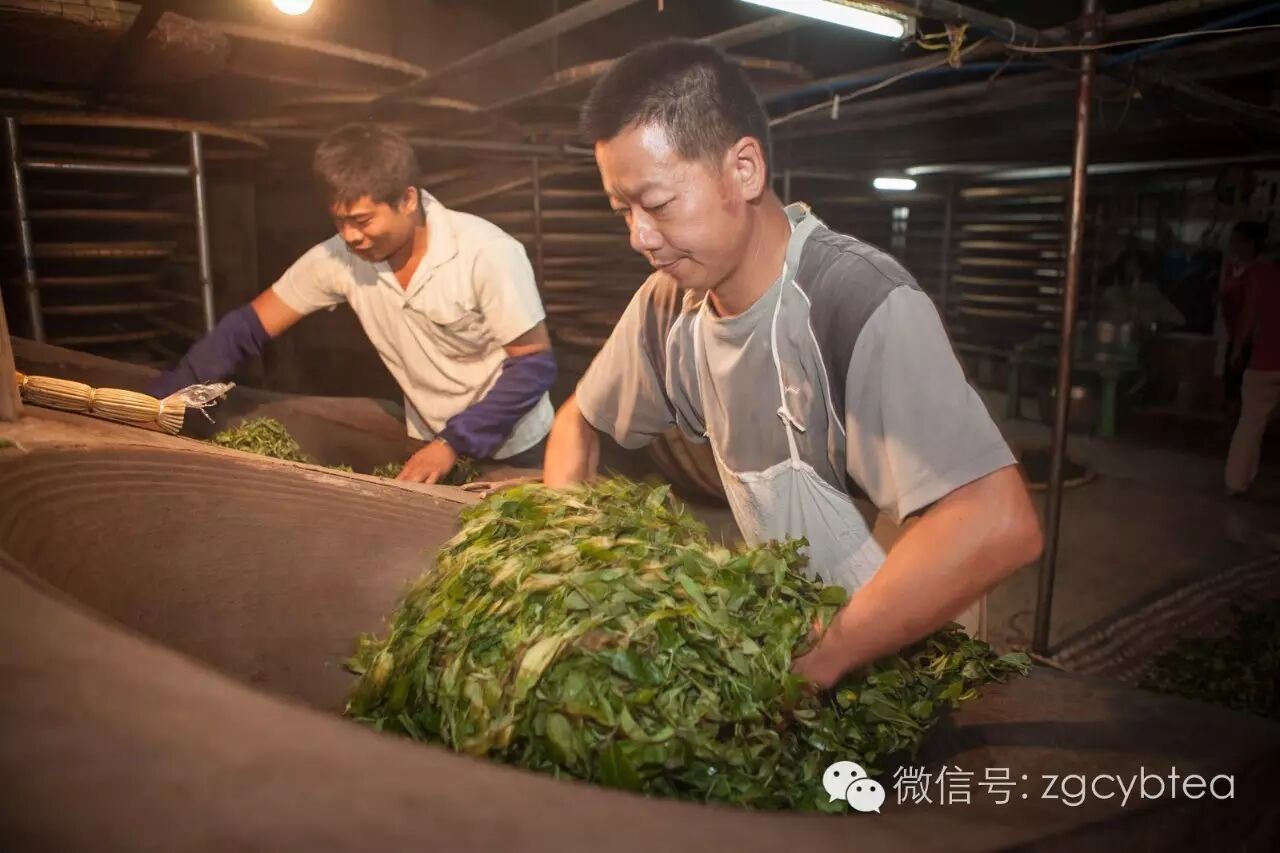 噼里啪啦的响声此起彼伏,受到高温刺激的茶叶正完成着绚烂蜕变,叶片中的酶因为高温的关系而被抑制。
