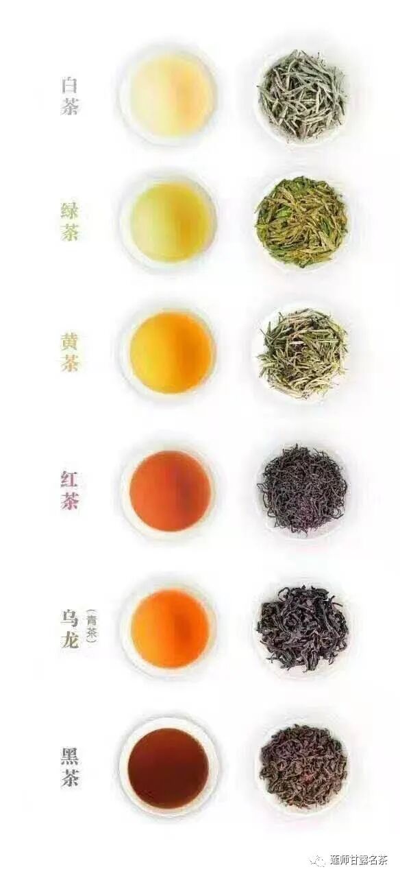 基本茶类可分为:绿茶、红茶、乌龙茶、白茶、黄茶、黑茶六大类。