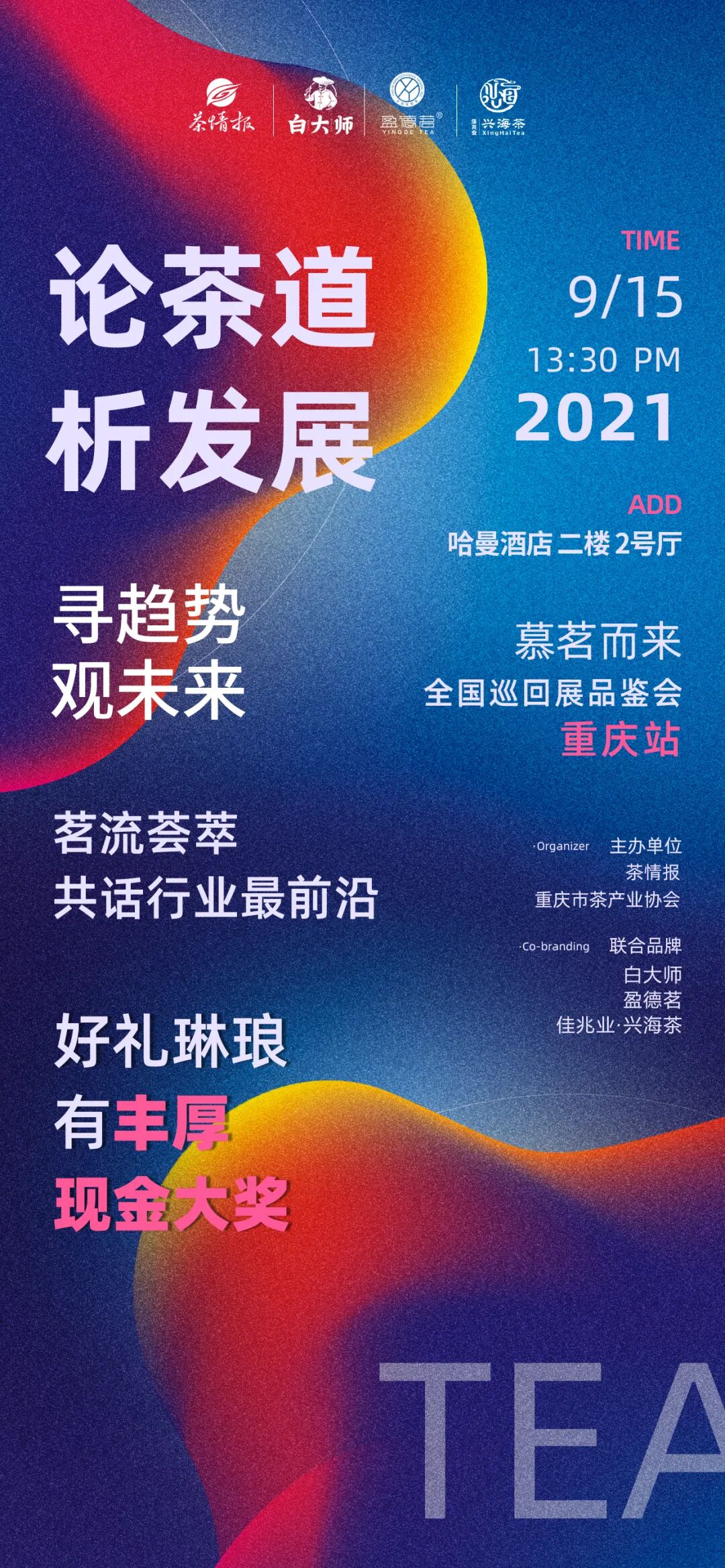 此次,茶情报携手白大师、盈德茗、佳兆业·兴海茶三大茗企,踏上火辣的重庆站,共同演绎一场火热的茗茶盛宴,9月15日,我们在重庆.哈曼酒店等你慕茗而来。
