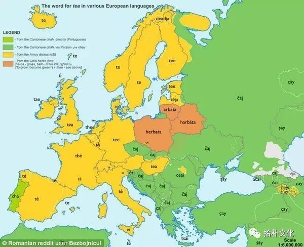 ▲据说这是用chai和tea的国家分布地图