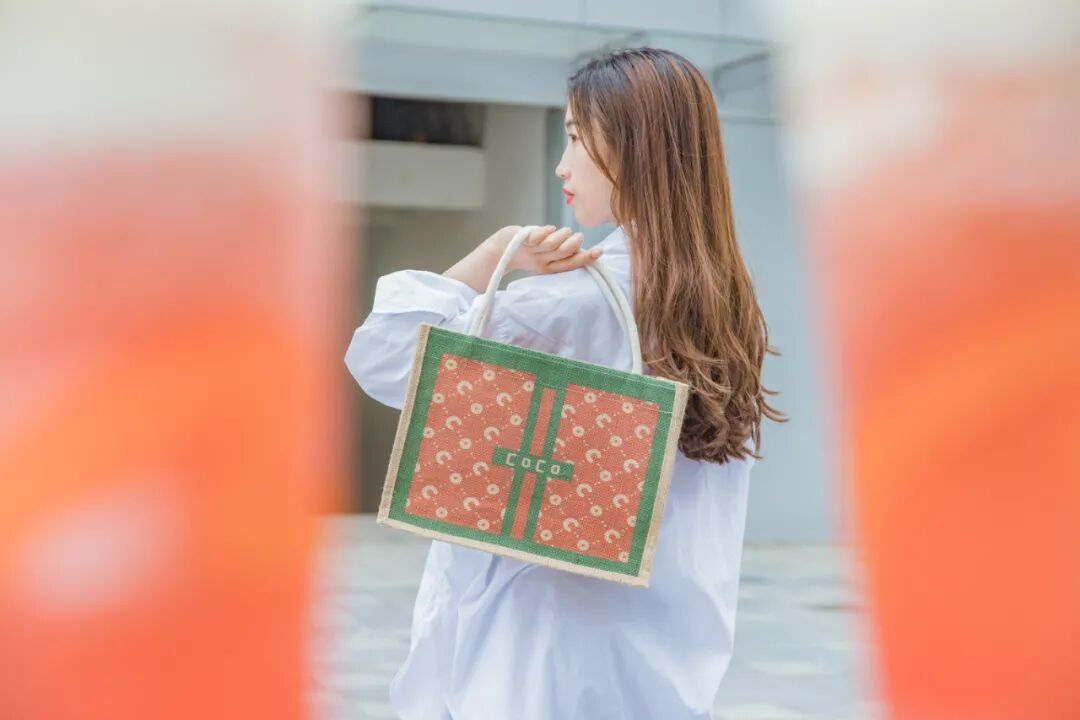 CoCo这次还推出了一款手拎袋,只送不卖!红绿撞色搭配,加上显眼logo花纹,可爱中又不失精致设计感,用来拍照简直太太太出片了! ①可以提着拍/