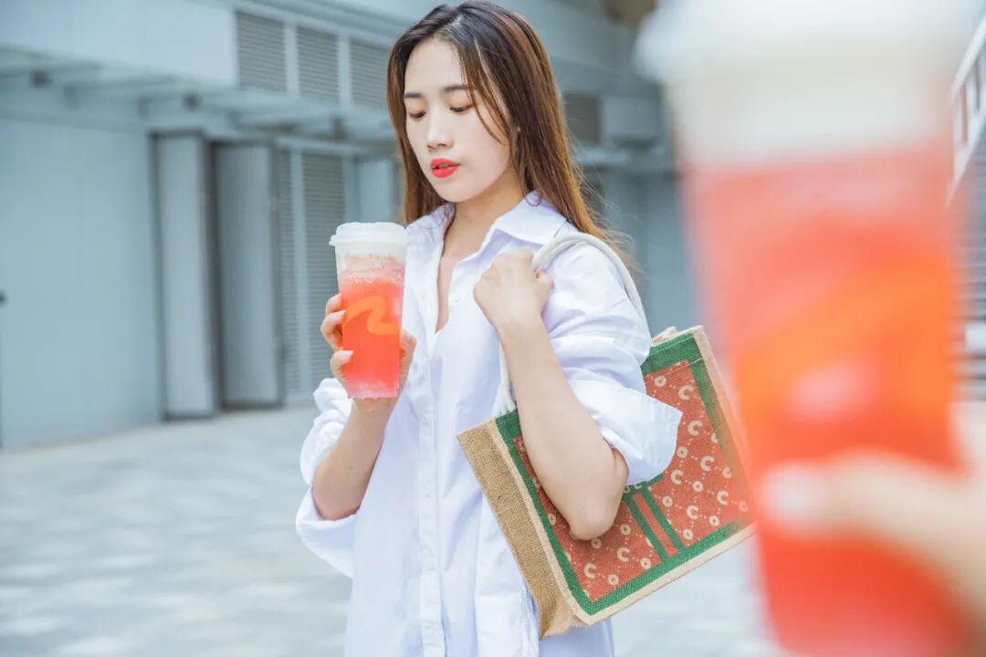 只要到门店正价购买桃桃、葡萄、玫珑系列产品任意三杯,就能免费get这款包包了!下次到店背上它,还能享受第2杯半价!手拎包仅限成都地区,大家别跑错地方了!