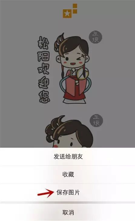 1、打开『 重磅 | 松轩茶语推出松阳历史人物超萌表情包啦!拿走不谢!』这篇文章,长按文章里的动图,保存GIF图片到手机;