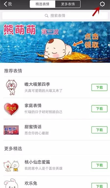 2、将你喜欢的全部保存之后,打开右下角“我”,选择“表情”;