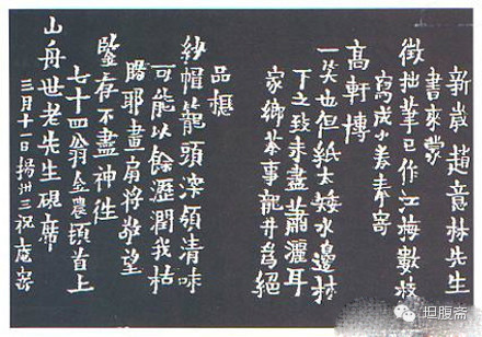 与《茶经》同列于茶书目录的尚有《煎茶七类》。行书《煎茶七类》刻帖的原石,现藏浙江上虞文化馆。《煎茶七类》带有较明显的米芾笔意,笔画挺劲而腴润,布局潇洒而不失严谨,与他的另外一些作品相对照此书多存雅致之气。