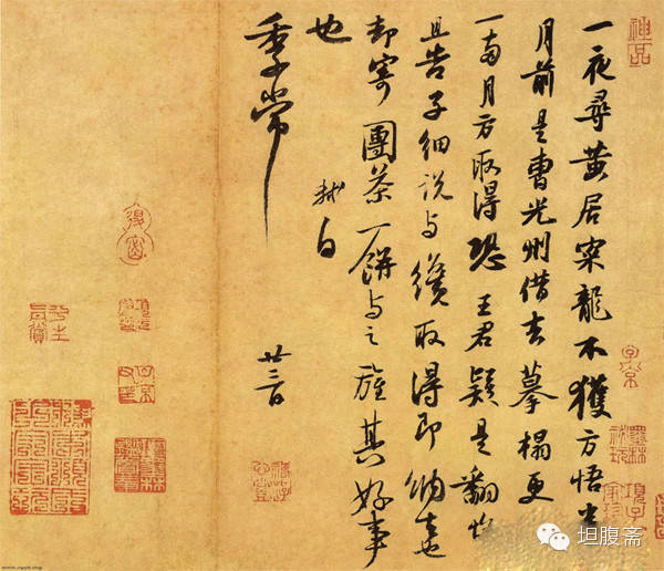北宋文人陈慥,字季常,与苏轼友善,两人书信来往甚频,《一夜帖》即为其中之一。《一夜帖》,又名《季常帖》、《致季常尺牍》。《墨缘汇观》、《石渠宝笈续编》著录。