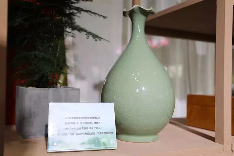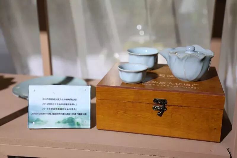 都说器为茶之父,展馆内也陈设了精美茶具——汝瓷、钧瓷、绞胎陶。