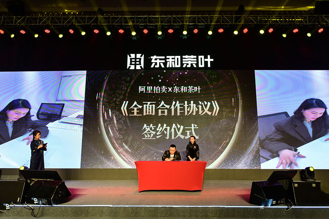 发布会活动现场,东和茶叶与阿里巴巴集团旗下的阿里拍卖以视频云签约的形式签署全面合作协议,共建茶叶全链路营销服务平台。茶叶全链路营销服务平台以助力传播中国茶文化、丰富百姓收藏与品鉴茶叶的渠道为宗旨,实行线下鉴定、仓储结合线上销售、回收和交易,建立一个完善可循环的茶叶经济,打造健康、可持续发展的老茶交易市场;并且帮助终端消费者缩短茶叶交易链路,保障消费者权益,产品保真保质的同时,让利于消费者。