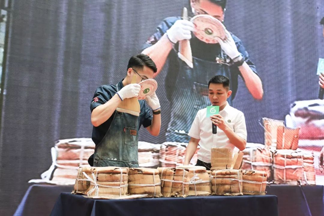 质检部现场示范如何辨别茶品真伪,尤其是大益老茶,由于其市场价值高,个别不法商家会对知名度高的老茶进行仿冒,因此学会辨别茶品真伪,是普洱茶投资入门第一课。