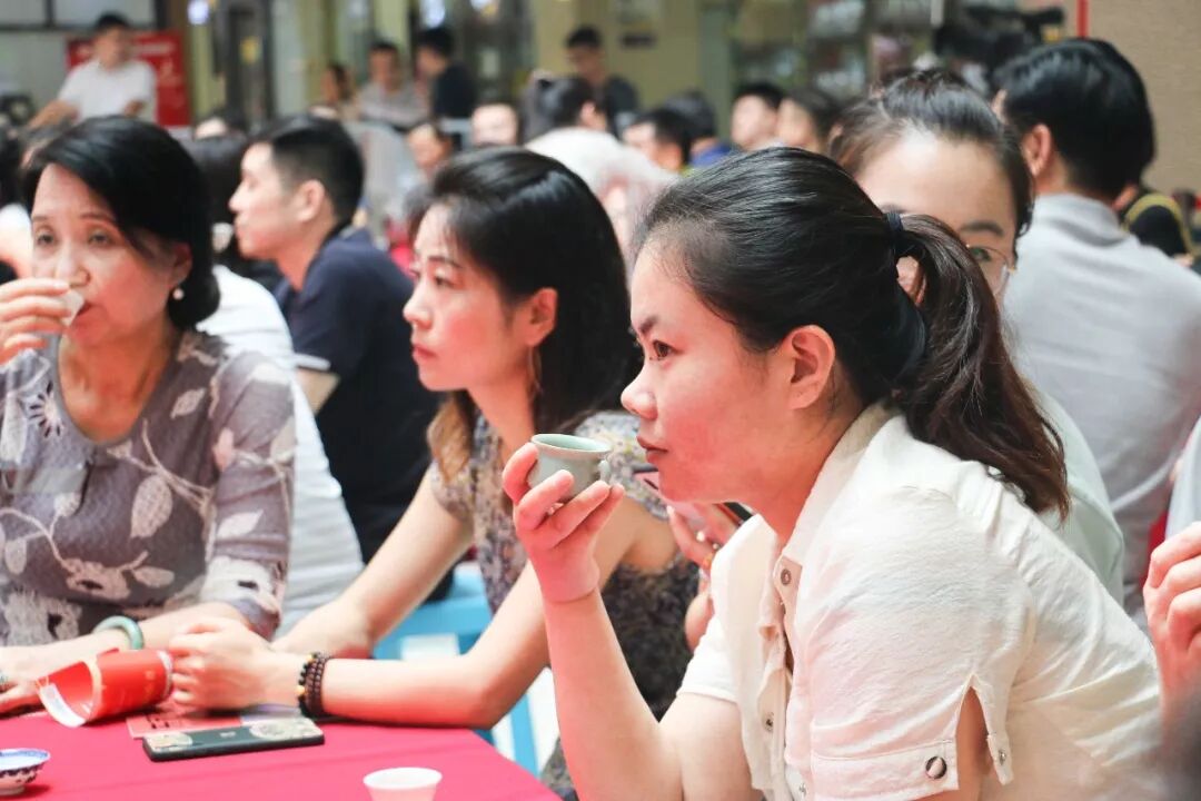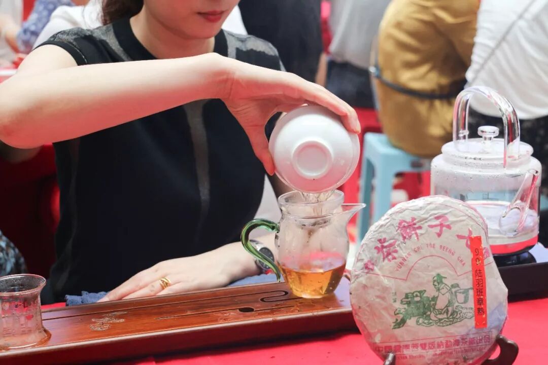 品鉴明星茶,了解普洱茶魅力品鉴会现场在推介会上,品鉴了2016年群峰之上、2006年南糯大树圆茶、2002年班章一号青饼。这三款产品是普洱茶中新、老茶的明星茶品,通过品鉴让茶友切身体会普洱茶由新到老的转化魅力;普洱茶“越陈越香”的特性,再次深入人心。