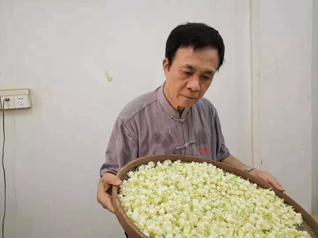 从狭义而言,“窨花”就是利用茶叶的吸香、茉莉花的吐香功能,将茶叶与茉莉花拌和在一起,使茶叶吸收花香,这个拌和、静置、吸香的过程称之为窨花。