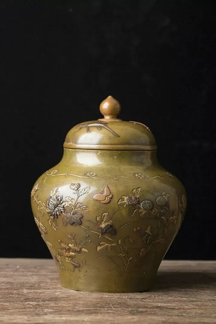 锡器是所有藏茶的最佳容器,它隔绝温度和湿度的能力最强,密闭性也非常好。其中,需要洁净干燥环境的乌龙茶尤其适合用锡器类茶仓储存,其他如青茶、黄茶、白茶、绿茶和新茶,也都很适合“住”在这类茶仓中。譬如未开封的绿茶,需要长期保存,装入锡器茶仓中可以防异味,并应放入冷冻室储藏。但需注意的是,尽量减少锡器类茶仓盖子开启的次数,以防摩擦过多、损耗过度而影响密封效果。