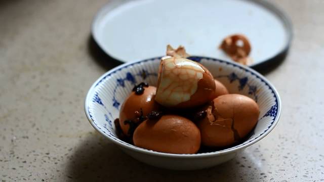 6.入味之后的茶叶蛋,剥开之后,蛋白上会出现大理石一样的花纹,味道吃起来也会更加香!