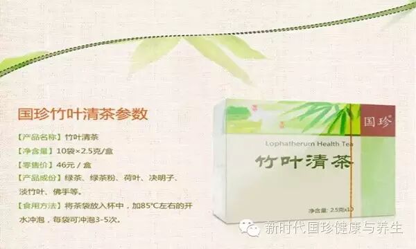 竹叶清茶是根据我国传统中医养生理论和现代营养学研究成果,在养生茶配方基础上进行科学改进和工艺升级,新推出的健康饮品。升级后的竹叶清茶,清热去火、除烦、降脂更加显著,长期饮用有助于延年益寿。