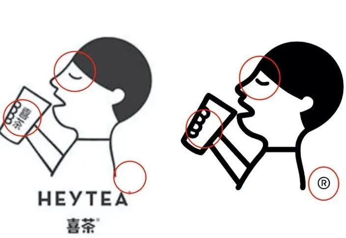 但把这张图和喜茶的logo仔细对比,我发现,线条的粗细、头像的细节还是有细微差异。
