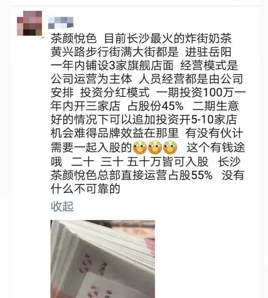 骗子的手段和喜茶如出一辙,也是以“开放内部名额,名额稀缺”为噱头,最后会选一些在十八线小城的加盟者,帮他们开出一家“高仿店”。