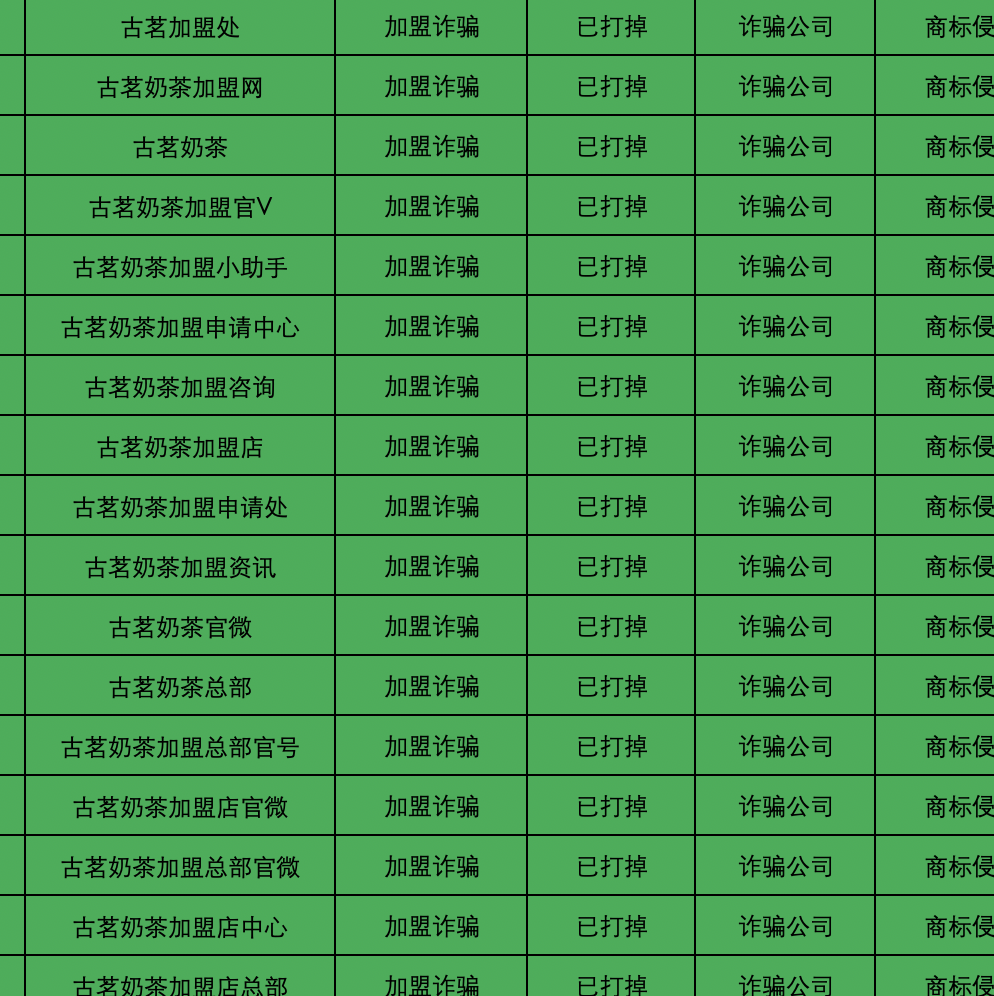 这个名为“古茗加盟官方”的,还申请了商标认证保护, 陈慧亮已经举报多次,均被驳回。后来在商标网站查询到,这个公司抢注了古茗XX类的商标,也算是“持证上岗”,所以多次举报都被驳回。