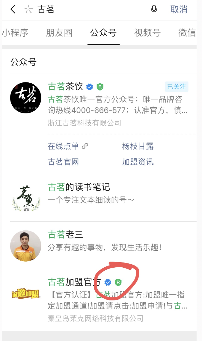 陈慧亮告诉我,去年在微博上,主要是一些类似“古茗奶茶培训中心”、“古茗奶茶加盟”的账号在侵权。