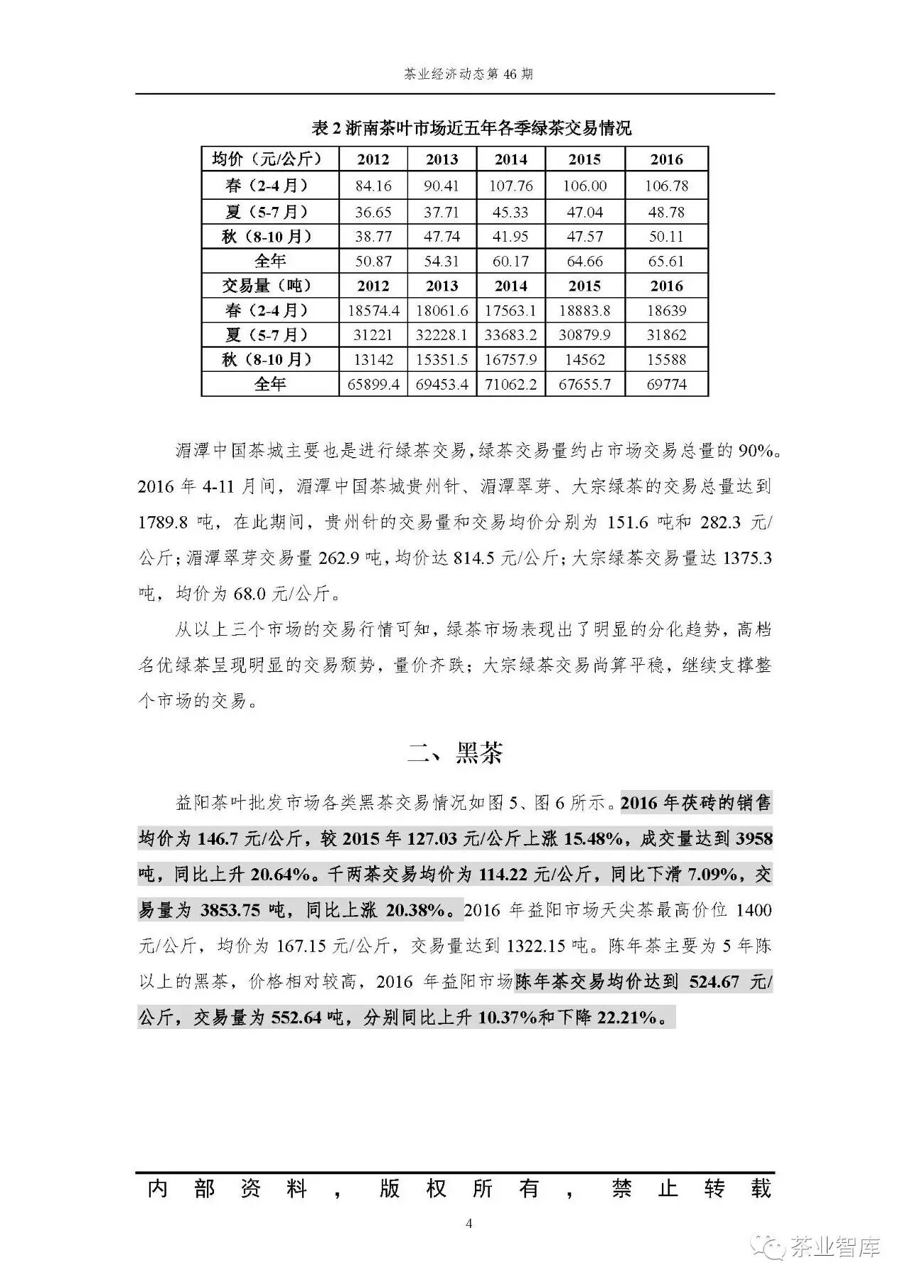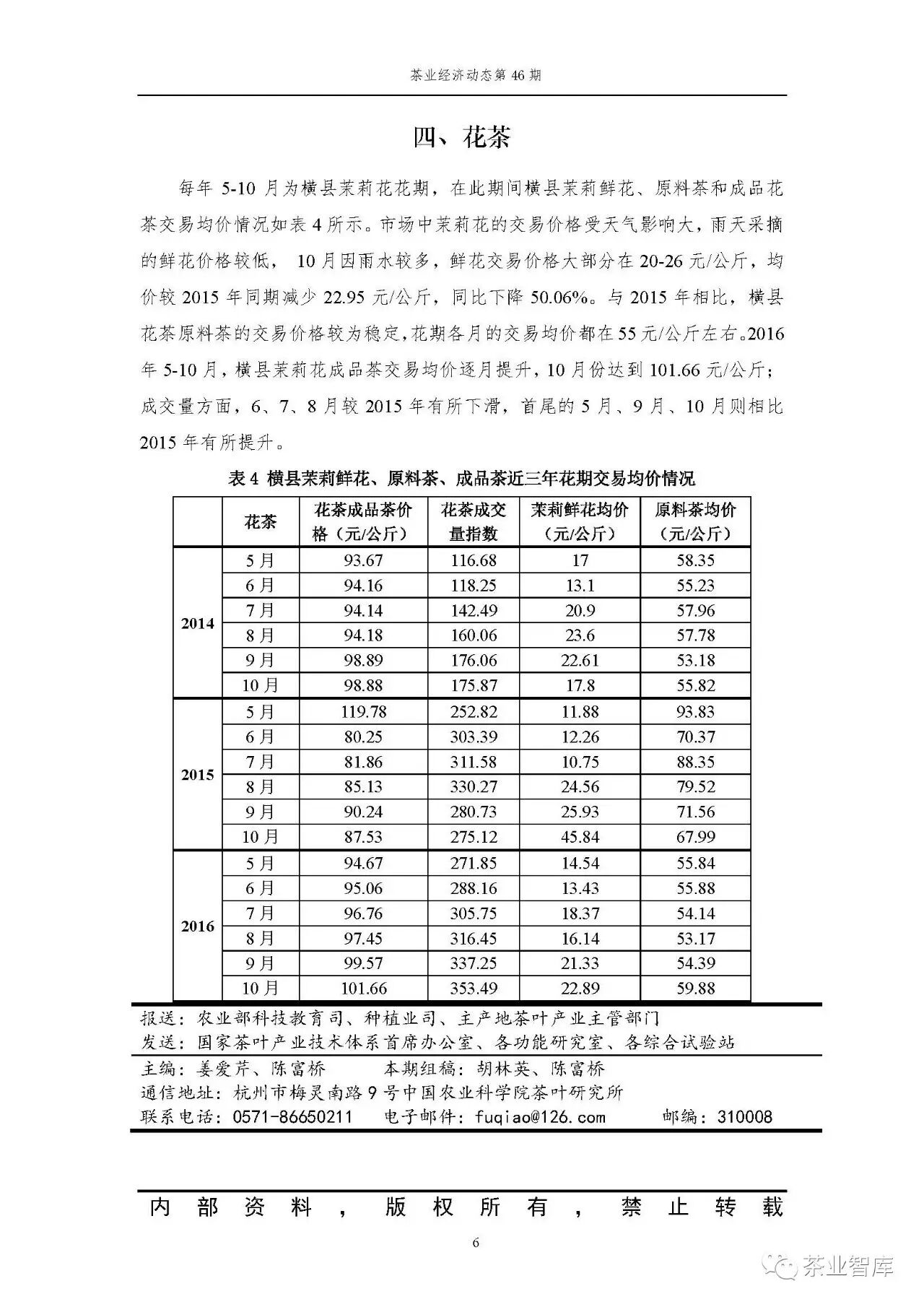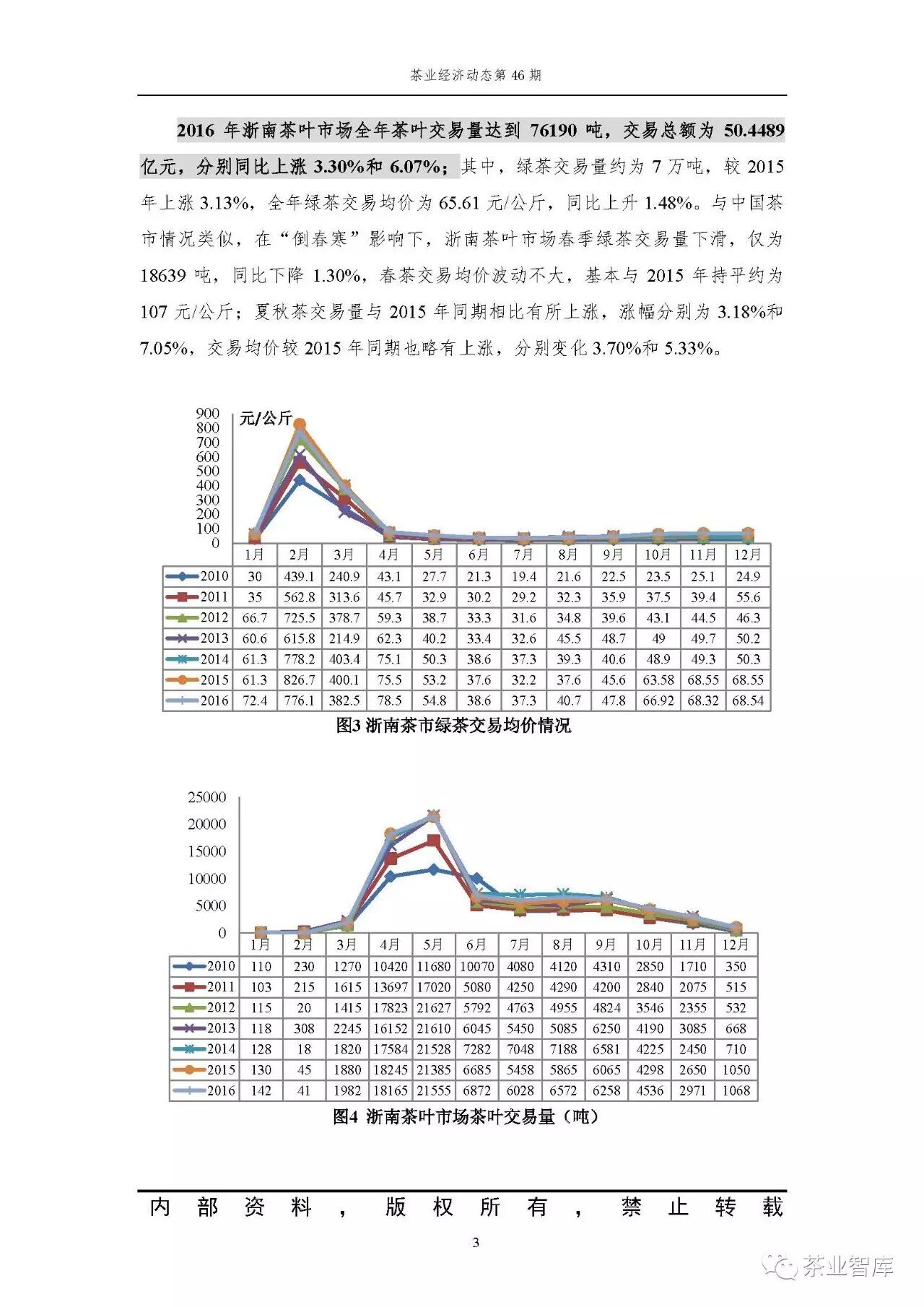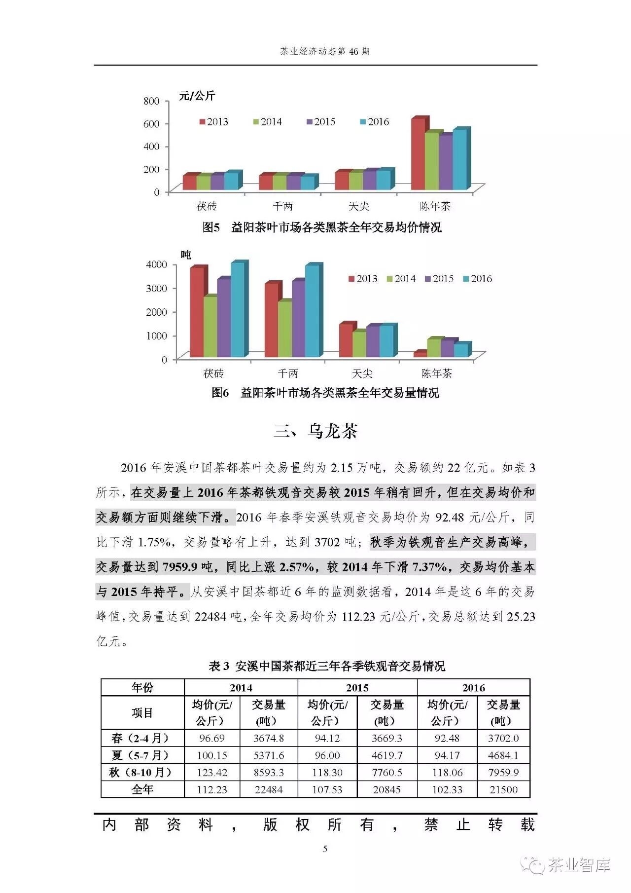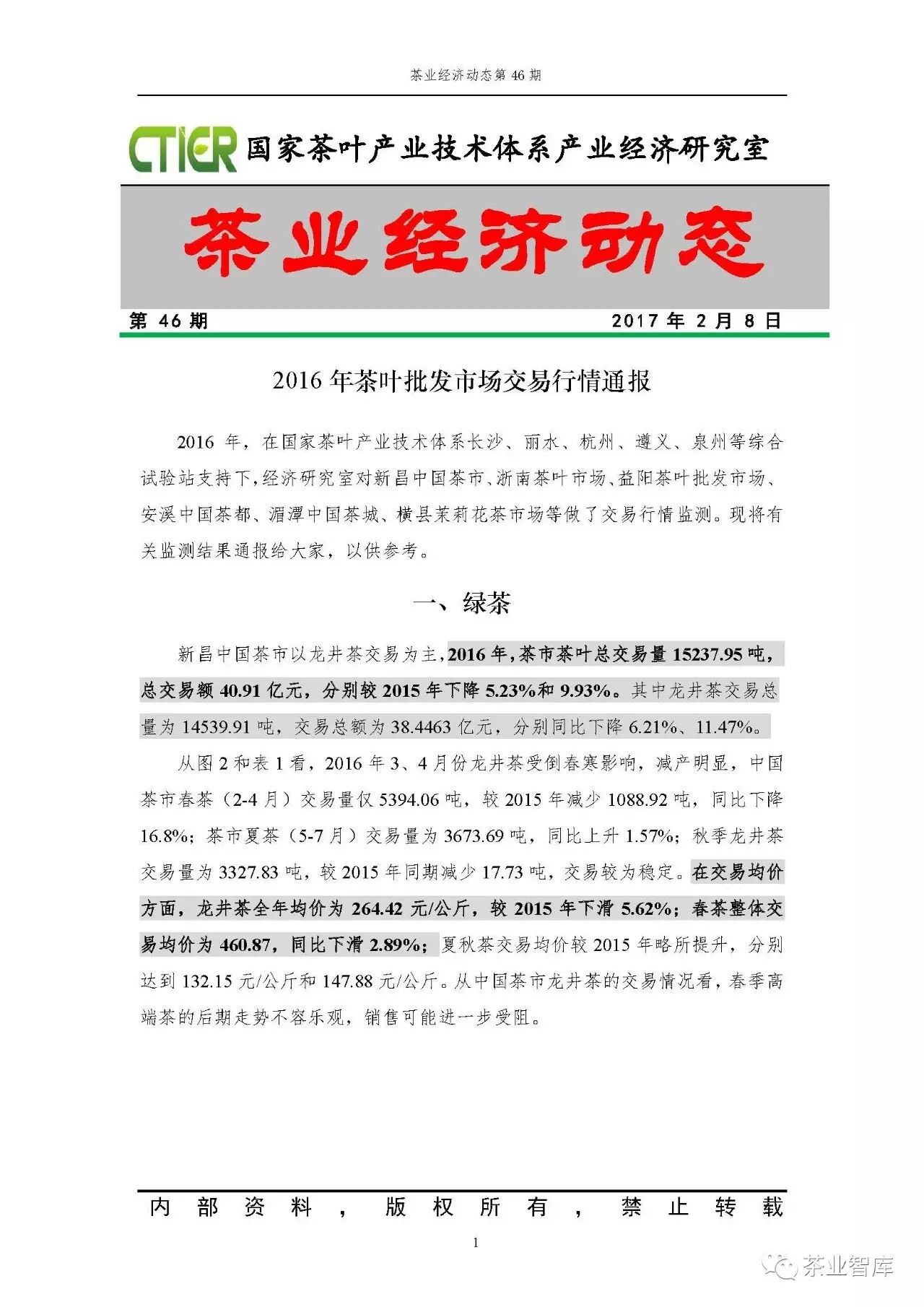 2016年,在国家茶叶产业技术体系长沙、丽水、杭州、遵义、泉州等综合试验站支持下,经济研究室对新昌中国茶市、浙南茶叶市场、益阳茶叶批发市场、安溪中国茶都、湄潭中国茶城、横县茉莉花茶市场等做了交易行情监测。现将有关监测结果通报给大家,以供参考。
