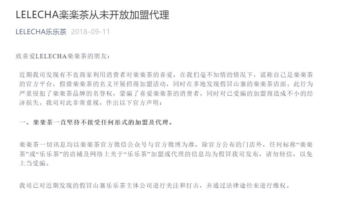 从上述公告可以看出,上海这个持有“乐乐茶”相关商标最多的公司并未开放“乐乐茶”加盟。那么当看到网络上铺天盖地的“乐乐茶”奶茶加盟广告,作为创业者的你,会加盟吗?