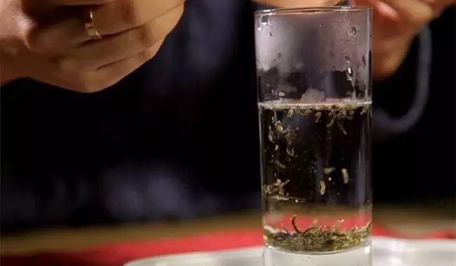 第四步: 欣赏绿茶茶叶起浮及舒展的过程。
