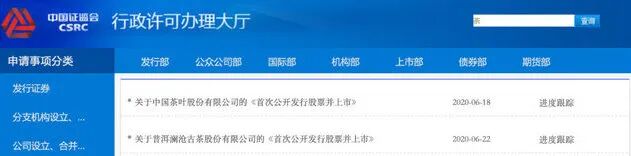 官网显示,中茶于2020年6月18日报送资料,6月24日被受理;澜沧古茶于2020年6月22日报送资料,6月28日被受理。中茶拟在上交所上市,澜沧古茶拟在深交所上市,谁会成为中国茶叶第一股?