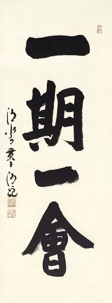 “一期一会”是千利休集珠光(村田)流、绍鸥(武野)流之义理而提出的重要茶之道(不是茶道),后经七哲、三千家和千宗室(里千家)、速水宗达等人传修,得到进一步发扬。“一期一会” 四个字首次被提出是在千利休的 弟子山上宗二写的《山上宗二记》 一书中。图 51 为北法相宗清水寺 贯主森清范墨迹。