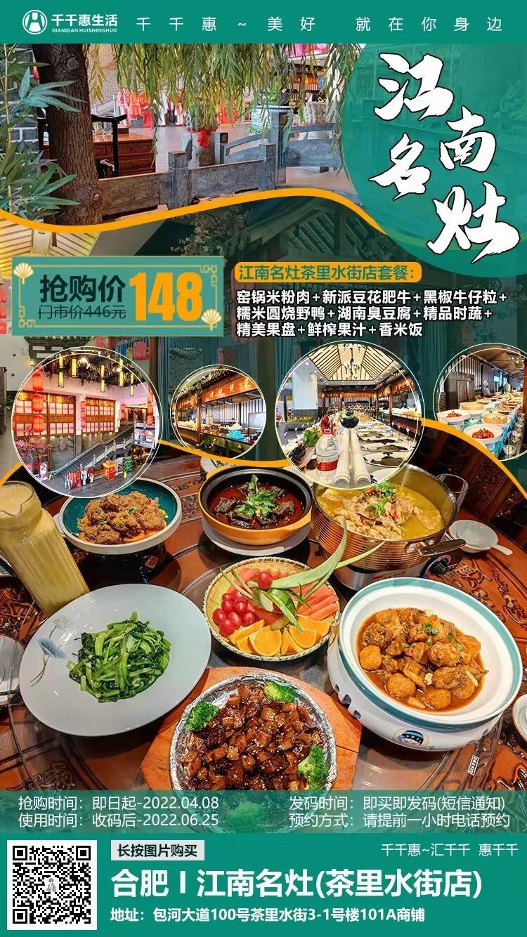 【包河大道丨江南名灶(茶里水街店)】邂逅江南水乡,品尝江南味道!仅148元抢门市价446元的【江南名灶(茶里水街店)套餐】!窑锅