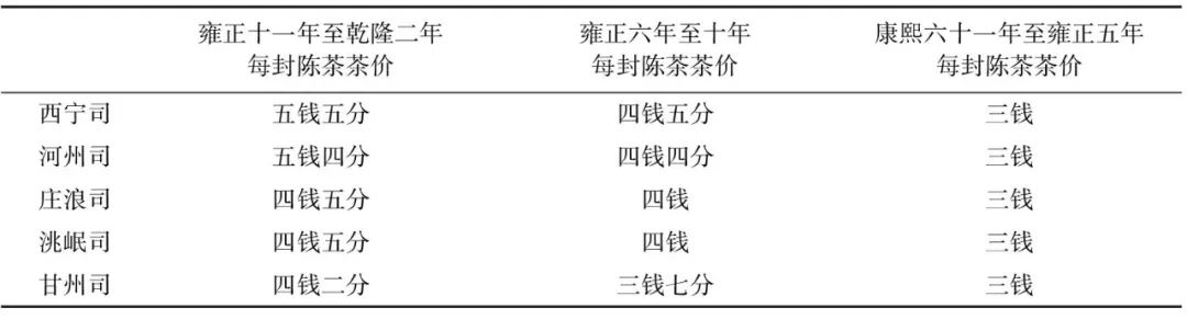资料来源:讷亲:《为遵议甘肃巡抚减价销售陈茶事》。